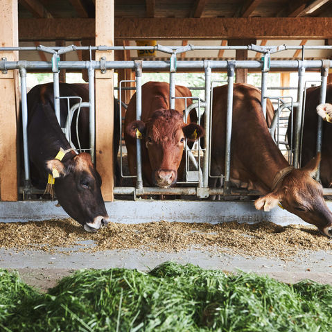 Je nach Jahreszeit und Witterungsbedingungen sind die Kühe mit ihren Kälbern im grosszügigen Freilaufstall oder auf der Weide. Milch direkt ab Euter, viel Bewegung, ständiger Familienkontakt, Tierwohl und gute Fleischqualität sind Voraussetzung für unser Natura Beef.